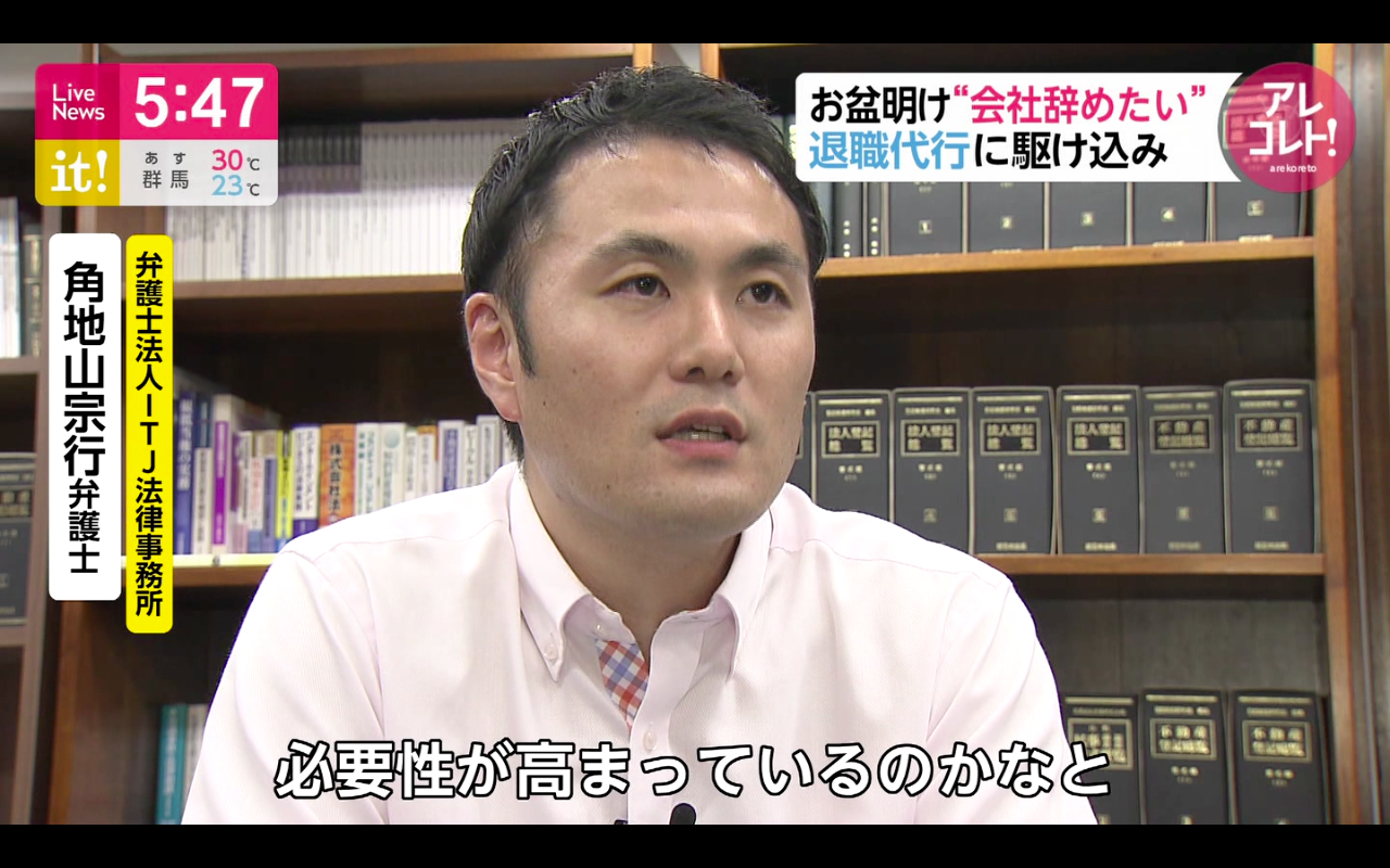 ITJ法律事務所の退職代行サービスがが紹介されました。(2019年10月)